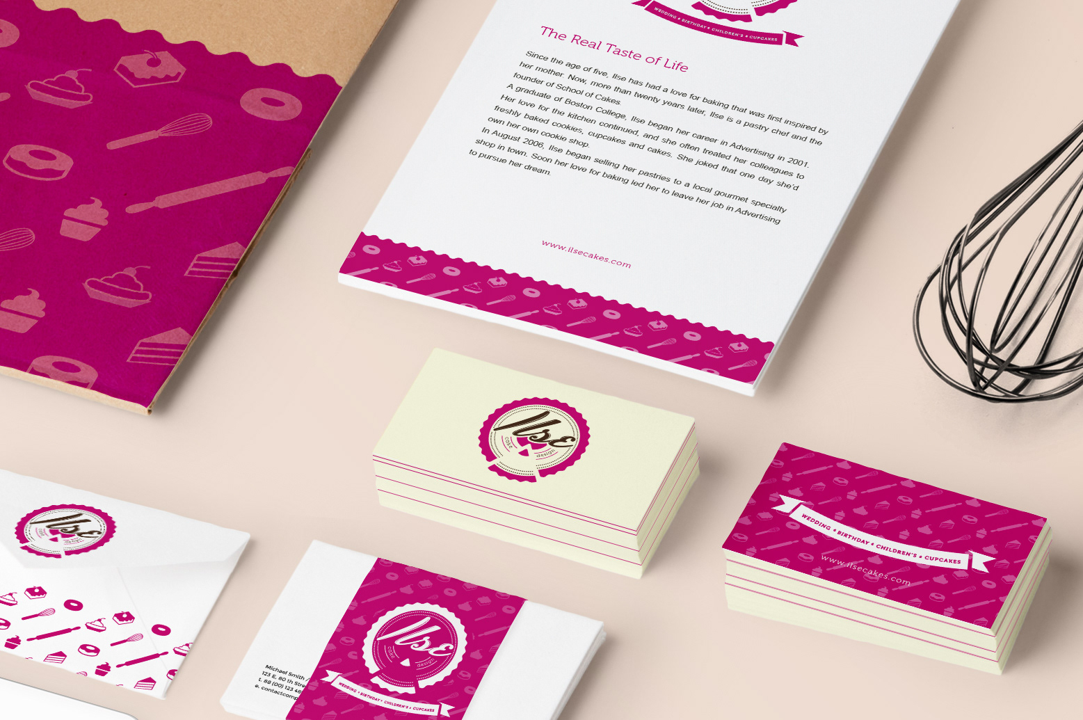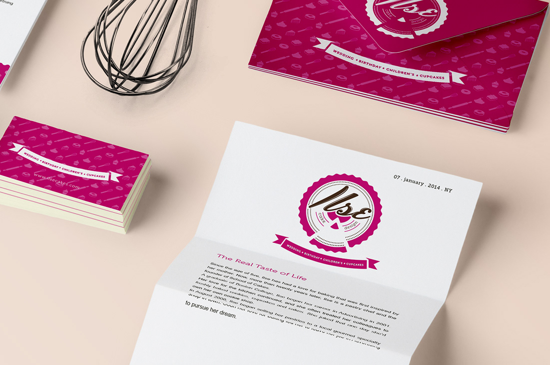 Projeto de Identidade Visual para serviço e venda de bolos, tortas e doces caseiros deliciosos, de alta qualidade e com um toque de design.